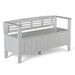 - Lift up bench lid opens using safety hinges to expose 2 large internal storage compartments