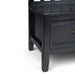 - Features 2 large frame panel drawers with Antique Bronze drawer pulls and metal drawer glides