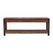 - Bench Regency Woven Artisan Furniture - Introducing the Regency Woven Bench, a harmonious blend of style and functionality. Handcrafted from 100% solid mango wood in a rich Chestnut finish, this elegant bench features a unique braided bottom shelf, perfect for storing or displaying essentials like baskets, shoes, or decor. With its sleek design and sturdy construction, this bench is ideal for entryways, bedrooms, or living spaces, adding both charm and utility. The Regency Woven Bench effortlessly combines timeless aesthetics with practical storage, making it a versatile addition to any home.