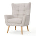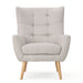 Mid Century Modern Wingback Club Chair With Tufted Back And Rubberwood Legs - Wheat
