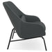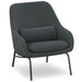 - Features lumbar pillow, deep comfortable cushioned seat, curved back and sides, black powder coated metal base and legs