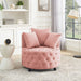 Modern Upholstered Swivel Chair With Button Tufted Design And Movable Wheels