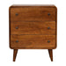 - Artisan Furniture Solid Wood Mini Chest - To match the other products from the curved collection, this mini chest of drawers has been constructed from 100% solid mango wood in a rich finish and stands on 4 Nordic style legs. It features shiny accent knobs on each drawer providing easy access when storing any clothes, towels, duvets, etc. The curved design provides smooth, safe corners and gives the product a modern and contemporary look which is perfect for city homes and apartments. This product is part of the Recession Collection.