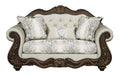 - Elegant Design: The Pierce Loveseat boasts an elegant and timeless design with button-tufted detailing, a floral-trimmed apron, and gracefully crafted legs, offering a sophisticated touch to any room.