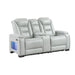 Power Console Loveseat With Power Headrest USB LED And Bookshelf Arms - Gray