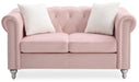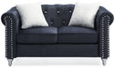 - Contrasting Throw Pillows: Included contrasting throw pillows complete the classic aesthetic of the loveseat.