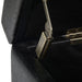 - Upholstered with a durable Distressed Black Vegan Faux Leather