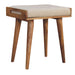 - Boucle Cream Tray Style Footstool - Derived from the French word for 'curled' or 'ringed' yarn or fabric. This handwoven upholstered furniture piece is made of 100% cotton and natural yarn. This footstool features a tray-style design and 4 Nordic-style legs constructed from 100% solid mango wood and works as a comfortable seat meaning it can be incorporated into many different interior styles with its clean and modern design.
