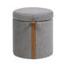 Brandy - Round Upholstered Storage Ottoman With Leather Accent - Gray