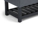 - Features lift up lid with child safety hinge to prevent lid slamming, large interior storage and open slat bottom shelf