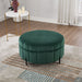 Upholstered Round Ottoman With Reversible Lid, Channel Tufted Pumpkin Shape