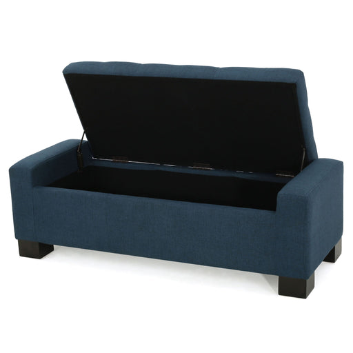 Empower - Button Tufted Waffle Upholstered Storage Ottoman With Wood Legs - Navy Blue