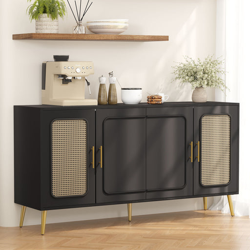 View full details4 Door Sideboard, Carved Sideboard Buffet Cabinet With Storage, Modern Coffee Bar Cabinet With Adjustable Shelf For Living Room, Dining Room, Kitchen - Natural