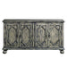 - Intricate Patterned Doors: The cabinet features beautifully patterned front doors that open to reveal four spacious shelves, providing ample storage for organizing or displaying your favorite items.