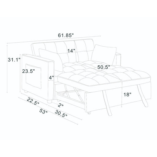View full detailsPull Out 3 In 1 Convertible Sleeper Sofa With Side Storage, Multi Functional