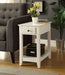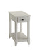 - Design & Features: The Bertie White Finish Accent Table boasts a rectangular shape with a wooden tapered leg design. It includes an open storage area featuring a bottom shelf and one drawer, providing versatile storage options.