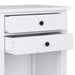 - Features two (2 ) spacious drawers with metal drawer glides and an open bottom storage area