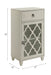 - Versatile Design: The Ceara White Finish Accent Table features a compact design with one drawer and a glass door, making it a stylish and functional addition to any space.