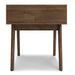 • Features one drawer with cut out drawer pull, side mounted metal drawer glides and four angled legs
