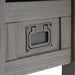 - Rustic design includes folding drawer pulls in an Antique Brass hardware finish