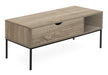 - Contemporary Design: This 42" long rectangular coffee table features a modern design with a wood-look laminate finish and a sleek metal base, making it a stylish addition to any living space.