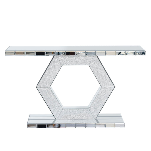View full detailsSparkling Crystal Hexagon Mirror Entryway Premium Modern Foyer Console Table With Diamond Glass Effects, Dual Tier Luxury Sofa Table - Silver