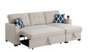 Sectional With Storage Chaise And Cupholder Armrest - Beige