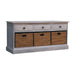 • Artisan Furniture Solid Wood Acid Wash Basket Storage Cabinet - Discover our Acid Wash Basket Storage Cabinet, a perfect blend of sustainability, style, and functionality. Crafted with care, this piece brings a touch of vintage charm to your modern home. It has storage options with 3 drawers + 3 handwoven wicker baskets for shoes, accessories, and more. Perfect to add to the living room or hallway.