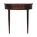 • Solid wood Backless Mounted Chestnut Console with Drawer - This minimalist console table, crafted from 100% solid mango wood in a chestnut finish, features a space-saving design with only front legs, allowing it to lean or mount against a wall. It includes a handy drawer for storing essentials, making it a stylish and practical addition to any room.