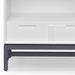 - Features two adjustable shelves, one fixed shelf with 2 small drawers on a metal frame and legs.