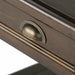• Transitional design includes rounded molded table top, framed drawers, square,slightly tapered legs and antique bronze classic drawer pulls