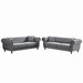 Chesterfield Velvet Upholstery Fabric Sofa With Roll Armrest & Nailhead, Mid Century Modern 3 And 3 Seater Couch - Gray