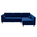 • Velvet Upholstery: Upholstered in luxurious blue velvet, the sectional not only adds elegance to your space but is also easy to maintain. Use a non-abrasive cleaning solution followed by a microfiber cloth to keep it looking pristine.
