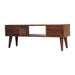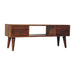 • Classic Chestnut Coffee Table - This coffee table offers a contemporary and versatile style of furniture for today's modern interiors. It has been constructed from 100% solid mango wood in a chestnut finish and finished with a clear lacquer making the product durable and able to withstand years of use. It also has 2 shiny brass knobs and 2 open slots for extra storage making it a perfect piece for the living room. This petite product is a part of Recession Collection.