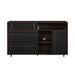 Contemporary Detailed Door Sideboard With Open Storage - Dark Espresso / Solid Black