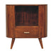 • Artisan Furniture Solid Wood T-bar Cortez Chestnut Open Slot Cabinet - This simple and modern cabinet is made from 100% solid mango wood in a chestnut finish and has Nordic style legs, storage space is offered with 1 small drawer which has a gold t-bar handle and a large open slot which is perfect for displaying a plant candle or ornament. Its displaying minimalist design means it can be suited to many interiors.
