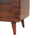 • Curved Chestnut Blanket Box - This curved blanket box is crafted from solid mango wood with a chestnut finish. Its spacious interior effortlessly holds blankets and keepsakes, preserving room tidiness. Versatile in function, it complements various decor styles and can even serve as extra seating or a display surface. Embrace the enduring charm and simple design that this blanket box brings, adding both aesthetic appeal and organization to your living space.