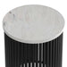 - Features solid wood table top and tall cylinder shape with unique pipe design base