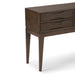 • Hand-finished with a Dark Walnut Brown stain and a protective NC lacquer to accentuate and highlight the grain and the uniqueness of each piece of furniture