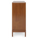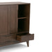 • Mid Century Modern design includes notched handles on doors, drawers and angled tapered legs
