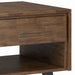 - Modern Industrial design features discreet hand pulls and solid metal angled legs for reliable support