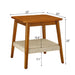Mid - Century Square Side Table With Woven Shelf - Walnut