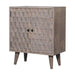 - Mini Pineapple Carved Cabinet - This mini cabinet has been constructed from 100% solid mango wood and has a fine stone finish. Its pineapple-carved design gives the product a unique twist and provides enough space with 2 doors that offer useful storage. Other features include shiny knobs and 4 Nordic style feet. This cabinet is the perfect addition to any home.