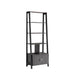 - Design and Structure: This modern bookcase features a sleek design with four open shelves and a two-door cabinet, offering versatile storage solutions in a stylish black and grey color scheme.
