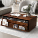 Modern Rectangle Coffee Table With 4 Drawers And 2 Display Shelves, Tempered Glass For Living Room - Brown