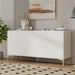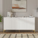Modern Wood Sideboard Cabinet With Carved Door Panels, Adjustable Shelves, And Sturdy Metal Legs - White