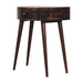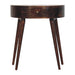 - Artisan Furniture Solid Wood California Walnut Odyssey Console Table - This beautifully designed console table is constructed from 100% solid mango wood in a California walnut finish and has a smooth circular design along with a shiny brass knob for easy access. A lovely, simple addition and accent piece for the home which can be incorporated with different interiors and styles of furniture.