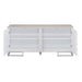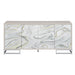 - Versatile Design: This elegant console cabinet is offered in two distinct color styles: White Marble Paint with Oak & Champagne accents, and White Marble Paint with a sleek Chrome Finish, making it adaptable to various interior designs.