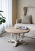 - Farmhouse Design: Decorative coffee table with a fresh take on classic designs, featuring a round, spacious top and intricately crafted ornamental legs.