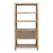 - Ample Storage: Features a framed drawer front with jute weave and four spacious shelves for books, photos, and knick-knacks.
